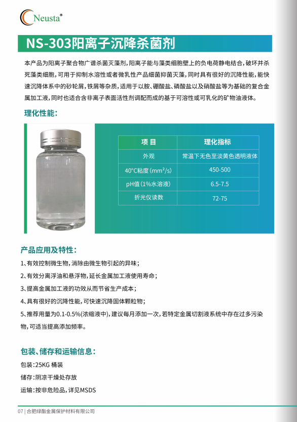 陽離子沉降殺菌劑 NS-303
